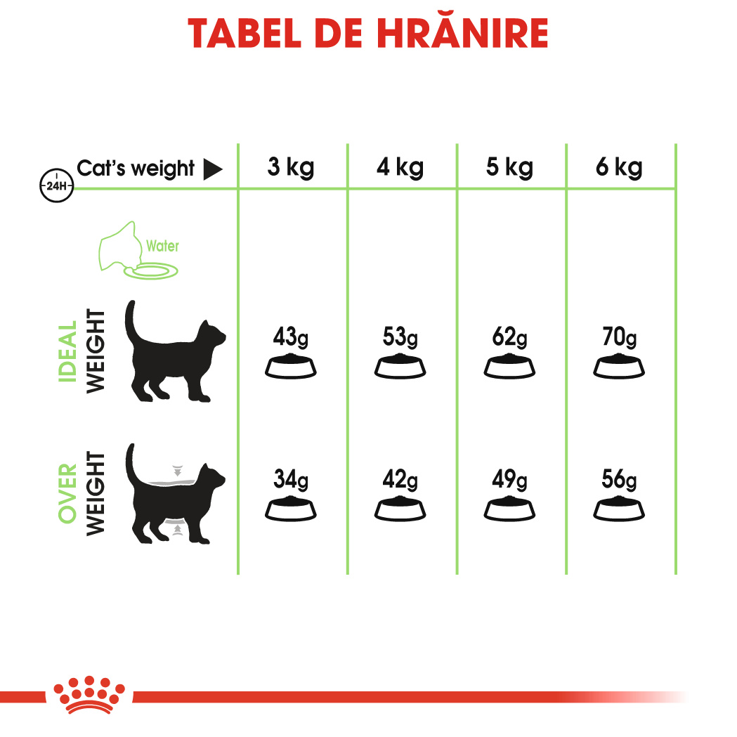 Recomandare: se administrează zilnic conform greutății și condiției corporale a pisicii, cu acces permanent la apă proaspătă și curată.