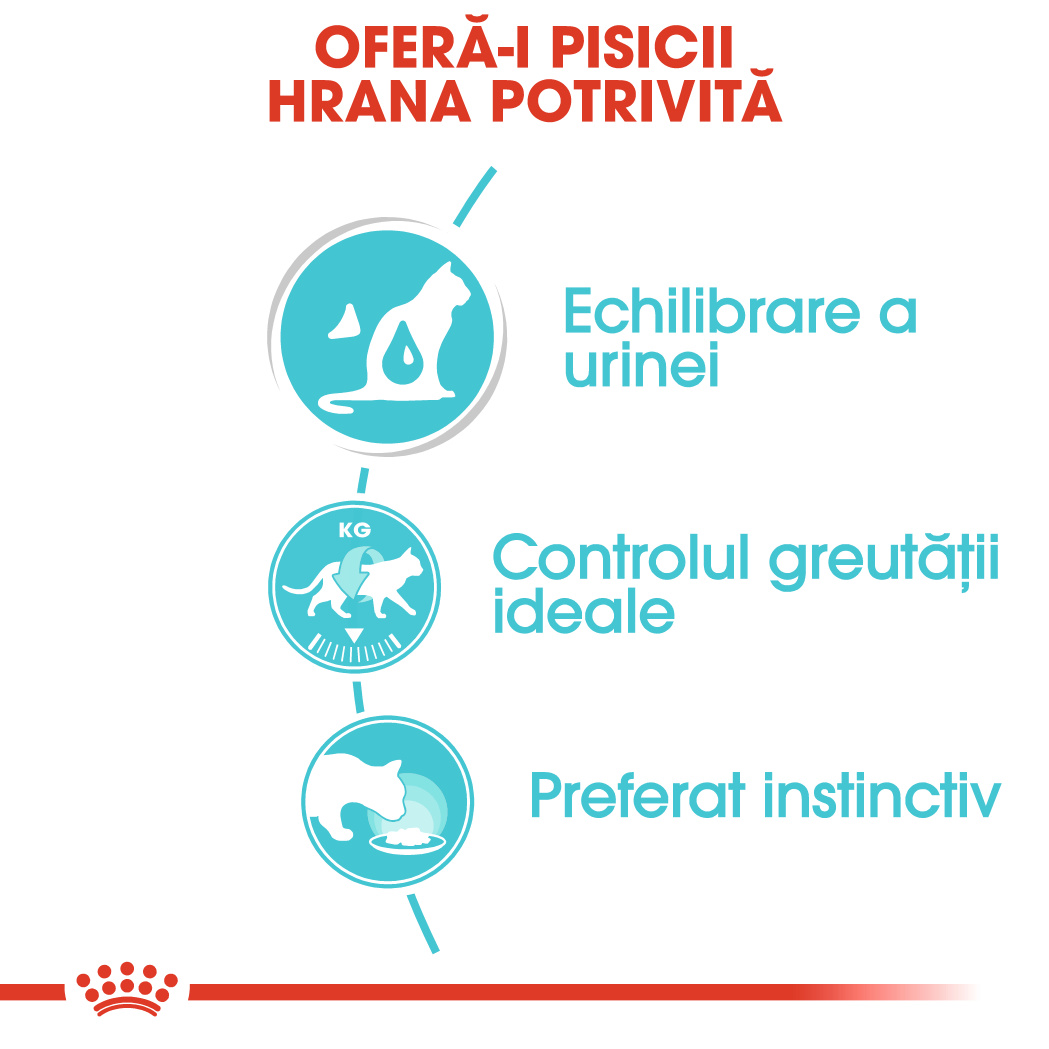 - Hrană umedă, echilibrată și completă special adaptată nevoilor nutriționale ale pisicilor adulte, cu vârsta peste 1 an, ajută la menţinerea sănătăţii aparatului urinar (carne mărunțită în sos)